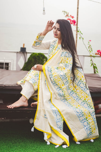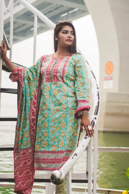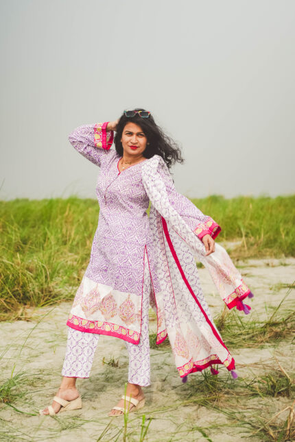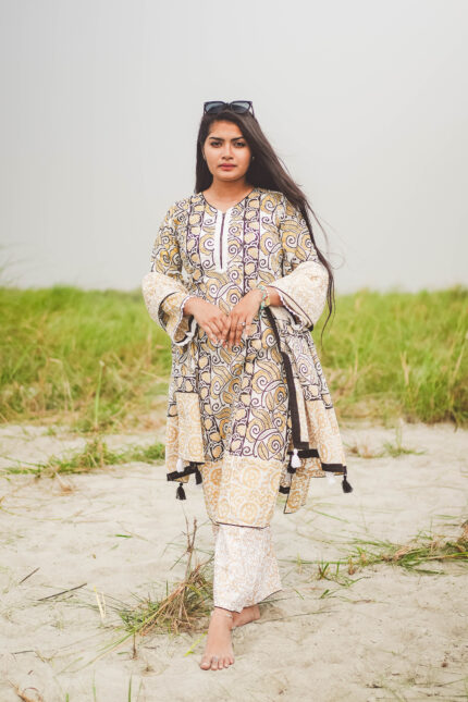 100% cotton (bexi voile) 3 pcs -semi stitched BLOCK PRINT