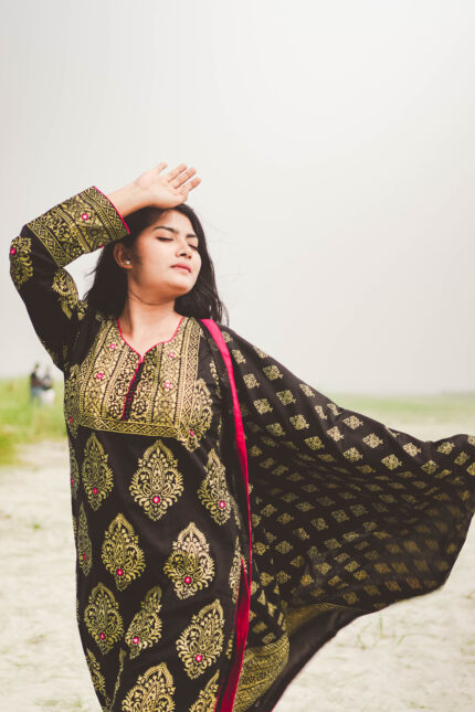 100% cotton (bexi voile) 3 pcs -semi stitched (salware stitched ,orna piping with stitch ,kameez with lace and piping side open)