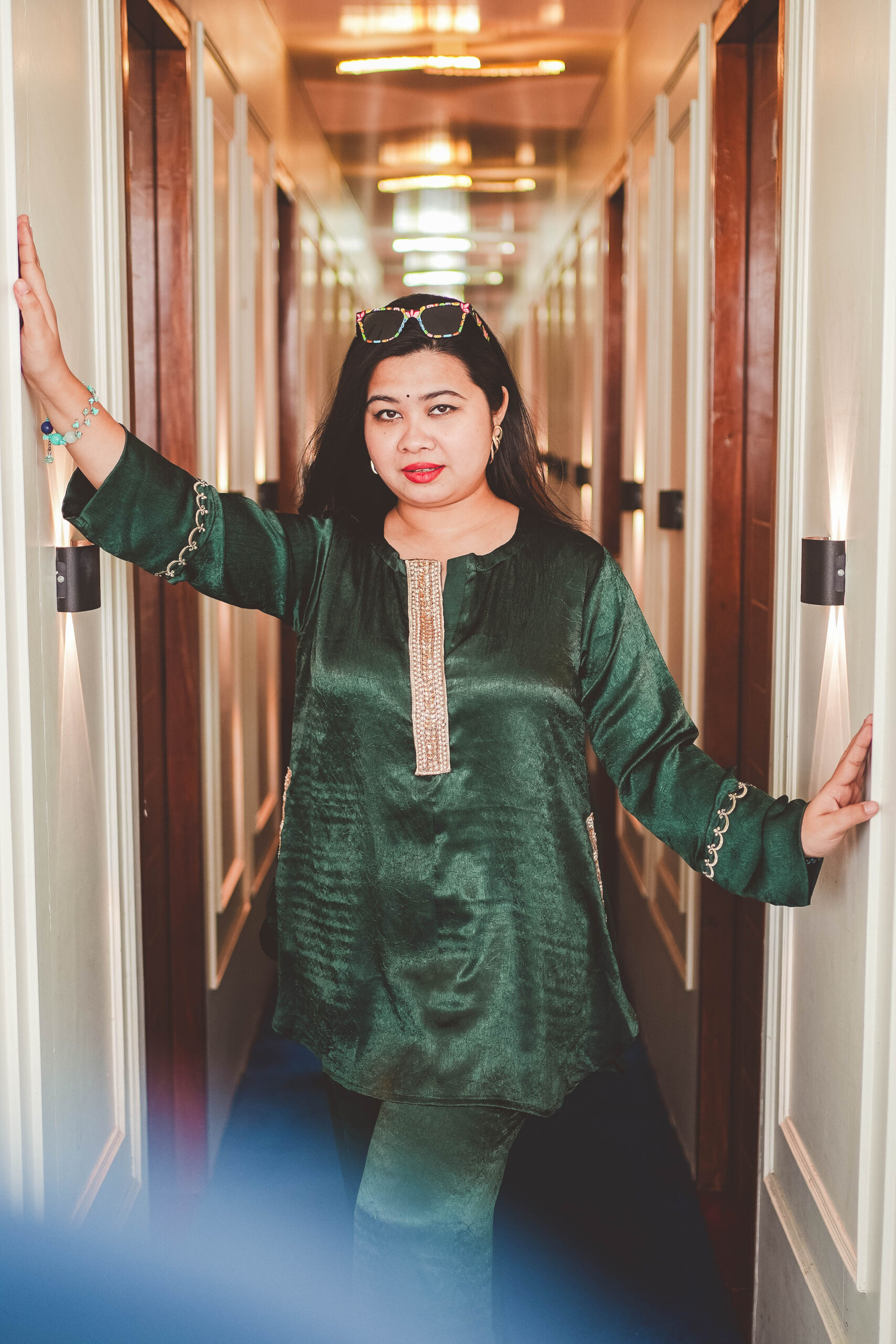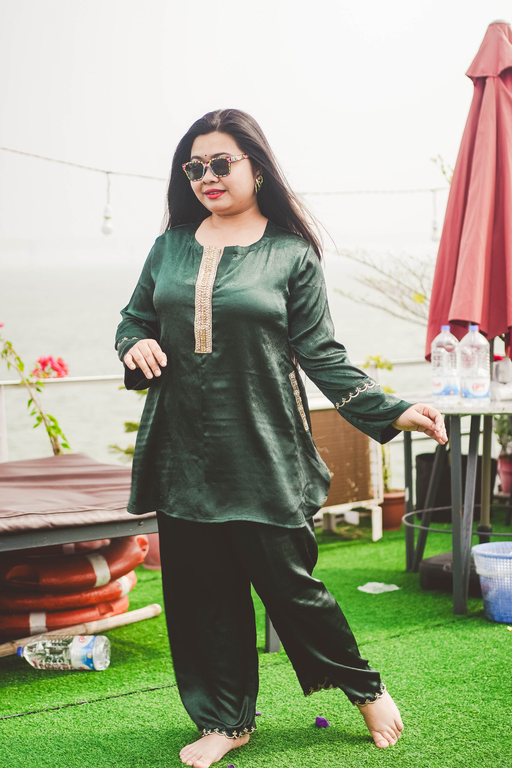 Co- Ord Set ( Dubai charry fabric with karcupi work)