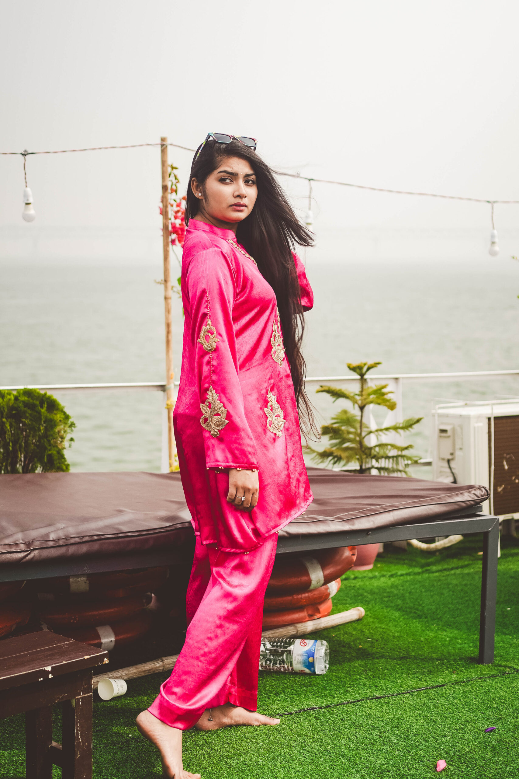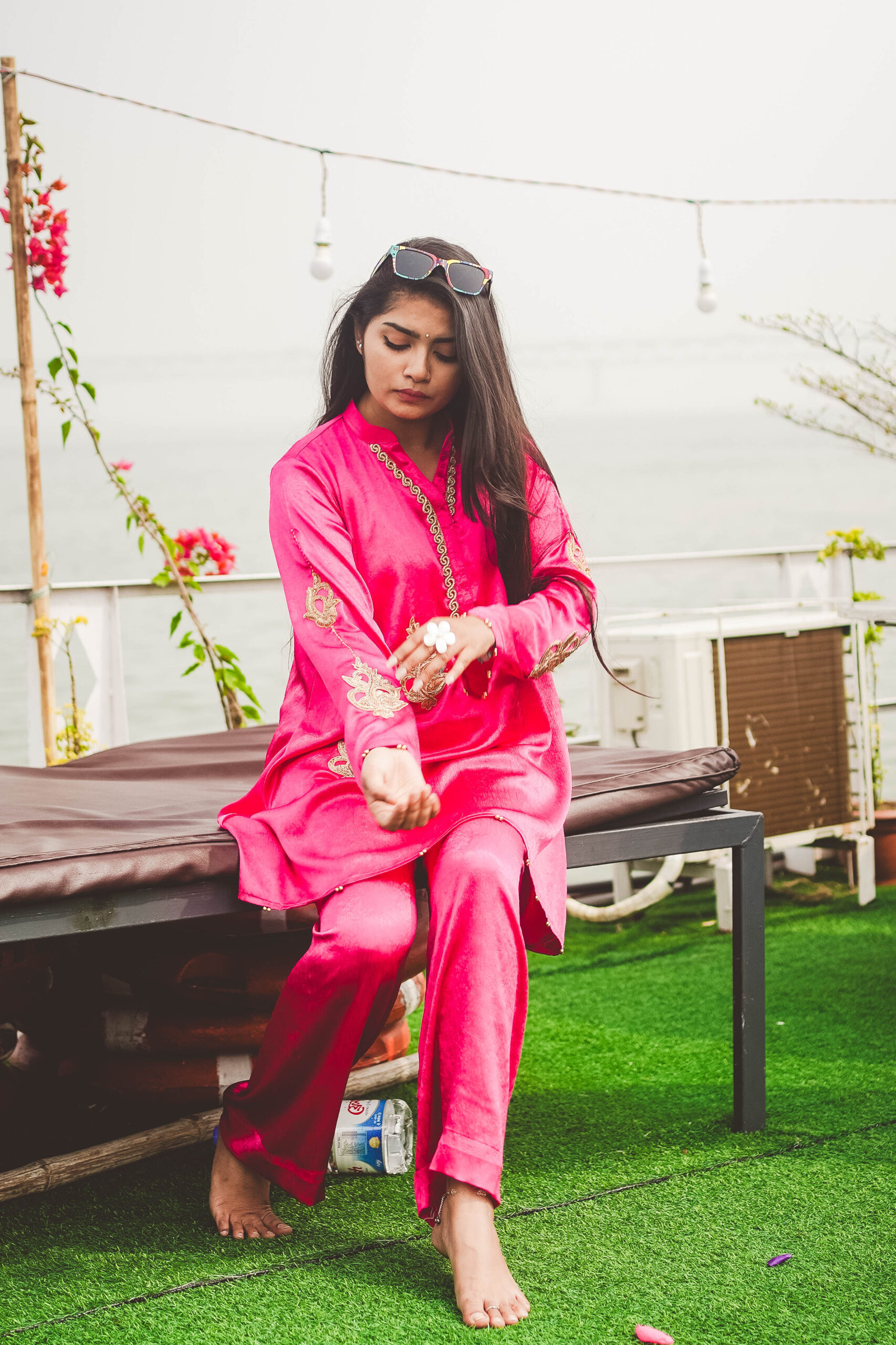 Co- Ord Set ( Dubai charry fabric with karcupi work)
